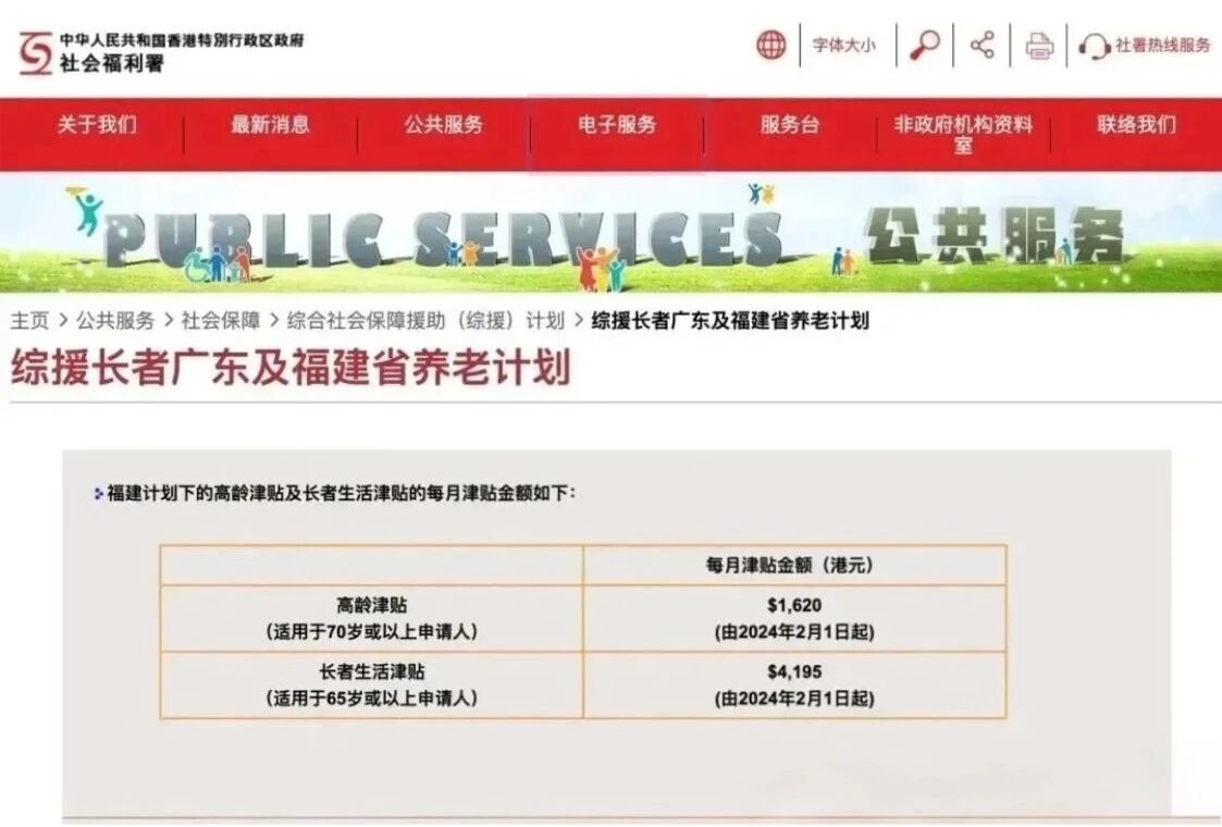 老年人可以申領社會福利,65歲可申請長者津貼,70歲可以申請高齡津貼,合約5000港幣每月。65歲以上長者在廣東養老還可以申領每月2675港元津貼。